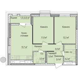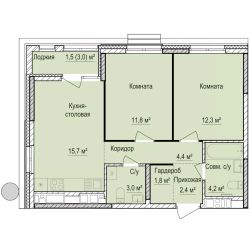Продаётся 2-комнатная квартира в строящемся доме (Дом 1), срок сдачи: III-кв. 2028, общей площадью 59.1 кв.м., на 15 этаже.