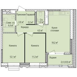 📚 Какая площадь двухкомнатных квартир?