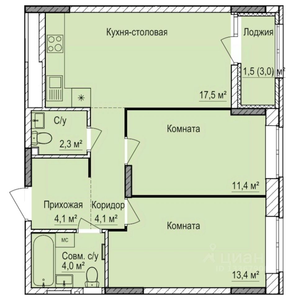 58 м² · Этаж 4 из 17