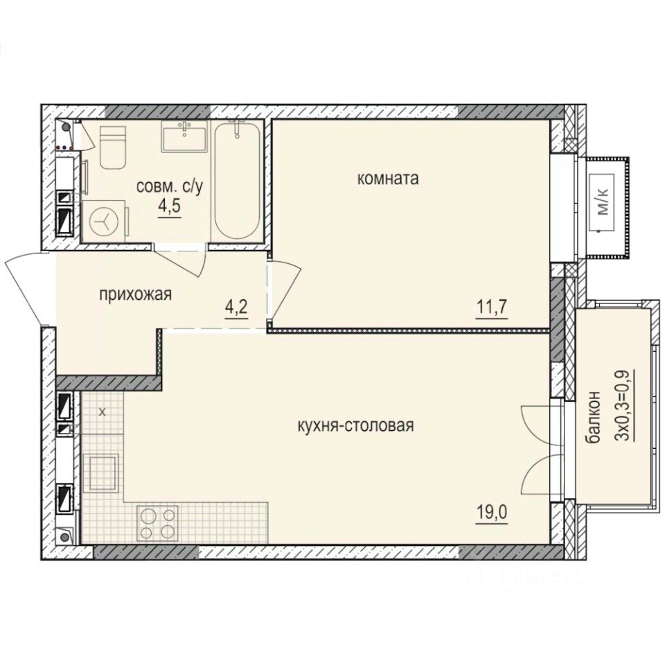 39 м² · Этаж 9 из 14