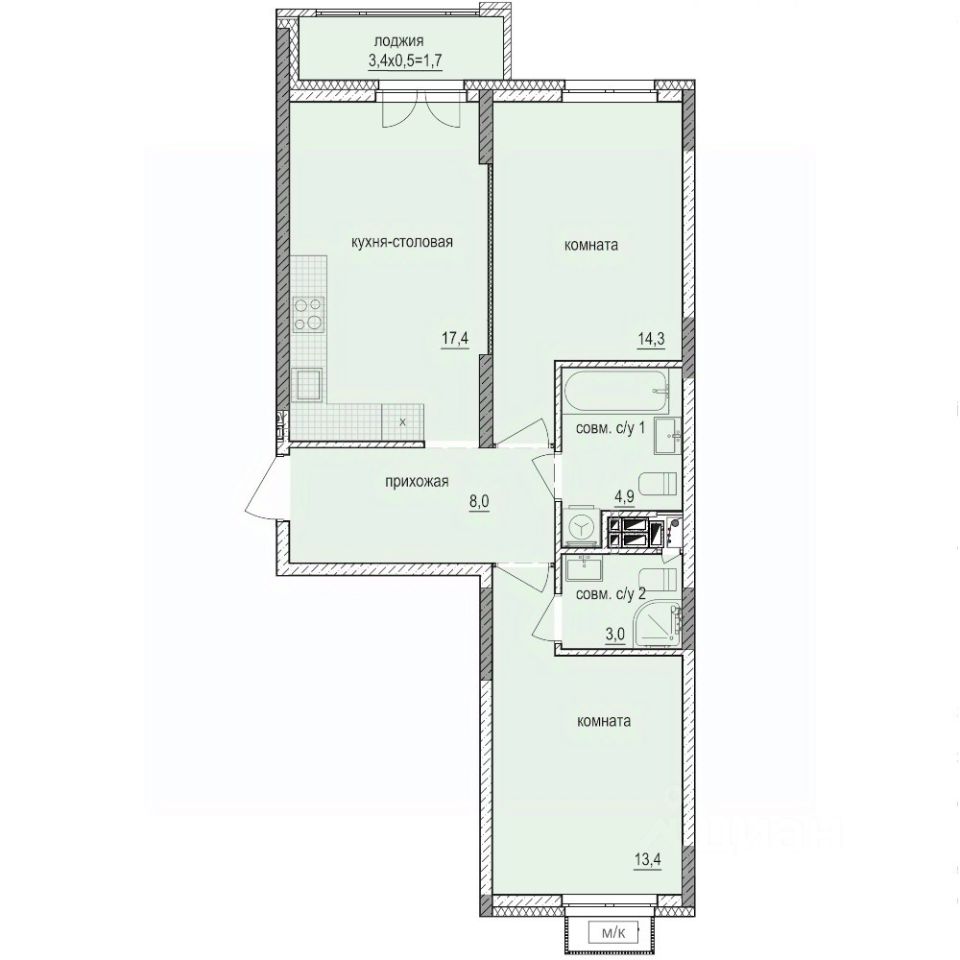 39 м² · Этаж 2 из 14