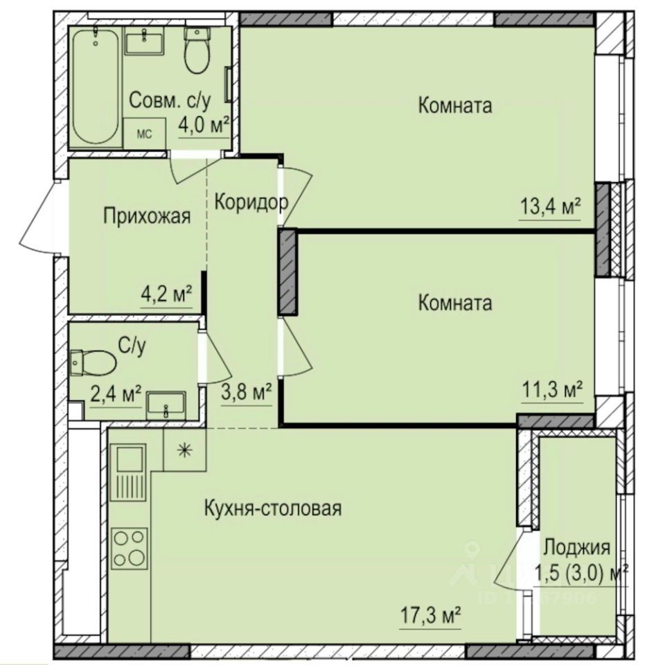 56 м² · Этаж 15 из 17