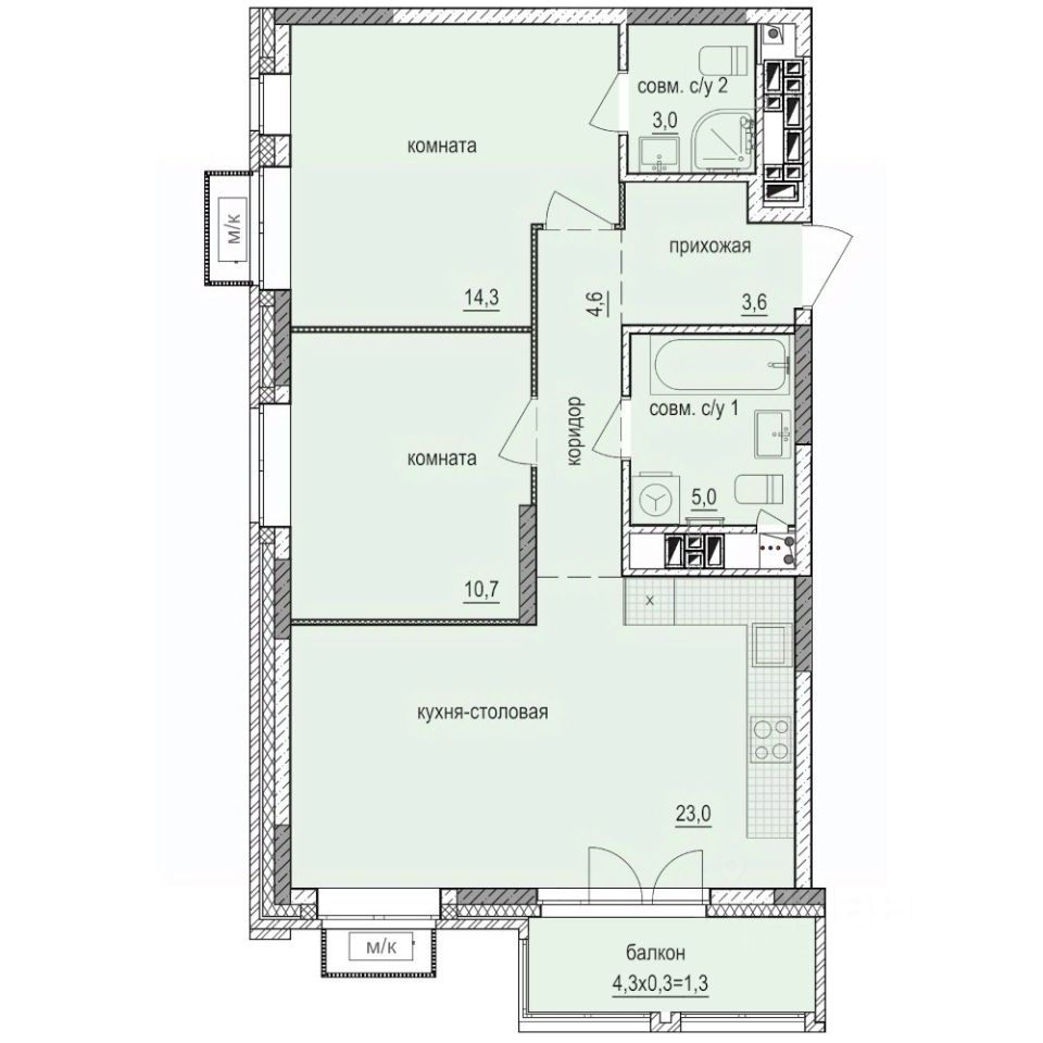 Продаётся 2-комнатная квартира в строящемся доме (Дом 5), срок сдачи: III-кв. 2026, общей площадью 63.9 кв.м., на 8 этаже. Квартира от застройщика КОМОССТРОЙ. Покупка защищена ФЗ 214 с использованием эскроу счетов.''Умные кварталы А14'' - новый микрорайон комплексной застройки на улице Камбарской, вдоль живописной хвойной аллеи, вблизи гипермаркета Леруа Мерлен. План развития микрорайона включает новую общеобразовательную школу и 2 детских сада на 105 и 200 мест каждый. Рядом расположены: школа 74, детские сады 278 и 280, медцентр Академия Здоровья, гипермаркеты Леруа Мерлен и Лента, спортивный комплекс Байкал.Помимо школы и двух детских садов на территории микрорайона запроектировано размещение нескольких зон отдыха: ботанической аллеи, множества велодорожек, пикник-парка с беседками и собственным прудом, АRT-пространства с дизайнерской аркой и подсветкой из множества гирлянд.На первых этажах размещаем просторные колясочные. Вы сможете оставить коляску, велосипед или электросамокат на первом этаже, не поднимая их до своей квартиры, и они не будут занимать место в вашей прихожей или кладовке. В колясочных предусмотрены поддоны для мытья колес велосипедов и детских колясок, а также лап ваших домашних питомцев. Перед входами в подъезды предусмотрены велопарковки.Из окон А14 будут открываться замечательные виды на пойму реки Позимь, лес микрорайона ''Ракетный''.Квартира:Большинство квартир запроектировано в современных СМАРТ-планировках, с большими кухнями-столовыми и уютными спальнями, где каждый квадратный метр продуман до мелочей! Предусмотрена периметральная поквартирная разводка труб отопления в конструкции пола. Мы выполняем все капитальные и грязные работы до передачи квартиры собственнику. Стены подготавливаем под оклейку обоями. На полу выполняем полусухую стяжку со звукоизолирующим слоем. Устанавливаем надежные металлические входные двери с тепло- и звукоизоляцией. Выполняем прокладку электросетей, устанавливаем электросчетчики, одну розетку и один выключатель в прихожей.По проекту, водопровод и канализацию заводим в помещение с установкой заглушек, устанавливаем счётчики воды. Окна выполняем с повышенной площадью остекления, высота подоконников - 0,72 м. Устанавливаем оконные конструкции с повышенными тепло- и звукоизоляционными свойствами. Применяем ПВХ профили с повышенными теплоизоляционными свойствами и двухкамерные стеклопакеты.По дополнительному соглашению мы можем выполнить в вашей квартире чистовую отделку по нашему типовому проекту.Умный дом:В микрорайоне ''Умные кварталы А14'' мы реализовали новый, расширенный пакет системы Умный Дом. Это целый перечень оборудования, объединенного в единый сервис, функциями которого можно управлять удалённо, прямо с вашего смартфона
