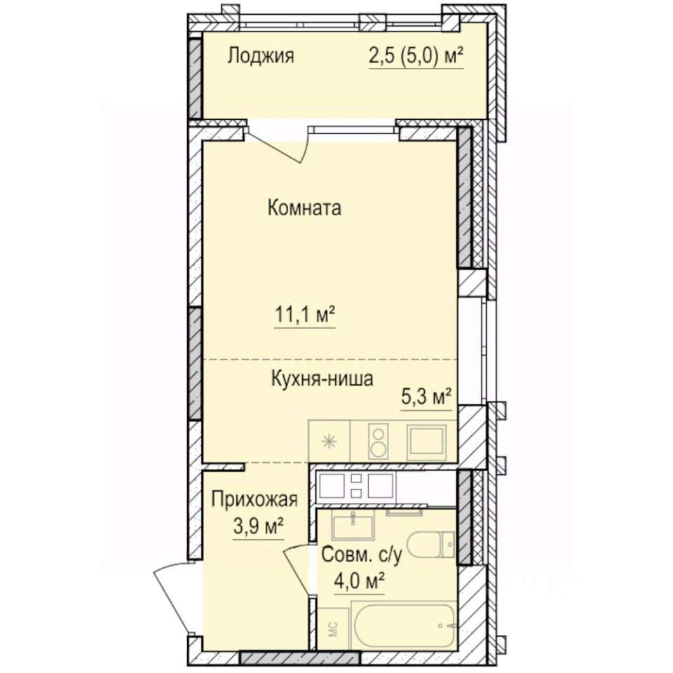 Продаётся студия в строящемся доме (Дом 1), срок сдачи: III-кв. 2028, общей площадью 26.8 кв.м., на 3 этаже.