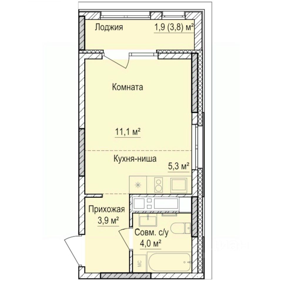 26 м² · Этаж 3 из 17