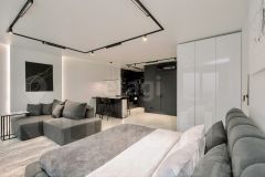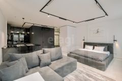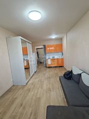 Продается уютная студия с дизайнерским ремонтом в монолитном доме 2016 года постройки. Просторная комната оформлена в светлых тонах, что создает ощущение простора. Из окон открывается вид на улицу. В квартире установлен современный холодильник и стиральная машина. Кухонная зона оборудована встроенной техникой, включая микроволновую печь. Ванная комната совмещенная, выполнена в стильном дизайне с качественной сантехникой. Дом оснащен консьержем и лифтом, а также имеет открытую парковку за шлагбаумом. Во дворе есть спортивная площадка.