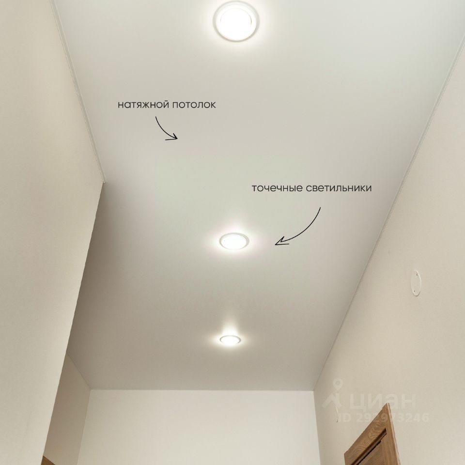 Чистовая отделка включает: керамогранит и плитку в прихожей, на полу и стенах в санузле, полный набор сантехники, стеклянную ширму на ванну, межкомнатные двери, натяжной потолок с точечными светильтниками, ламинат, обои, розетки и выключатели.