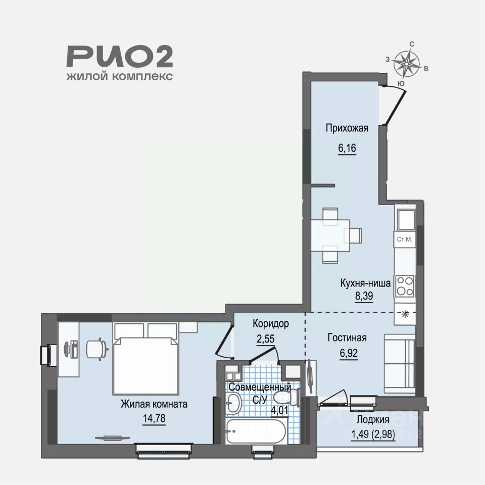 44,3 м² для тех, кто хочет жить в мире с квартирой, соседями и самим собой.