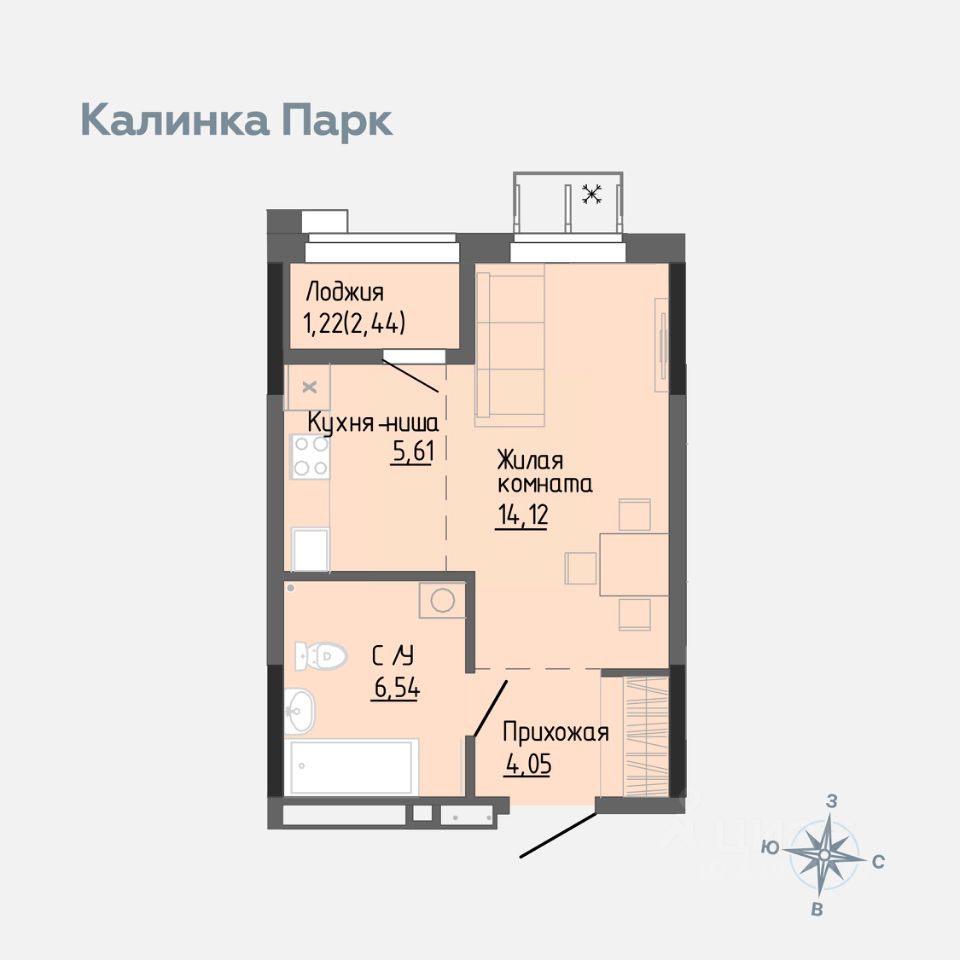 Продается квартира-студия в новом доме 4 микрорайона ''Калинка Парк''.