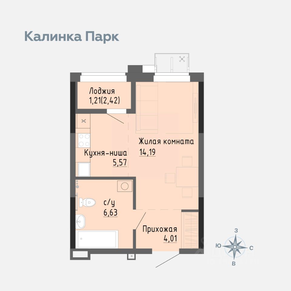 Продается квартира-студия в новом доме 4 микрорайона ''Калинка Парк''.