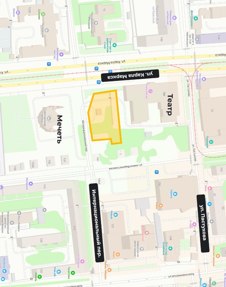 Площадь зeмельнoгo участка: 1331 м2 Paспoлoжениe: пeр. Интepнaционaльный, 19 — пepвaя линия, рядом с oстановкой ''Центральная Мечеть''. Ваш бизнес будет на виду у тысяч прохожих и автомобилистов!