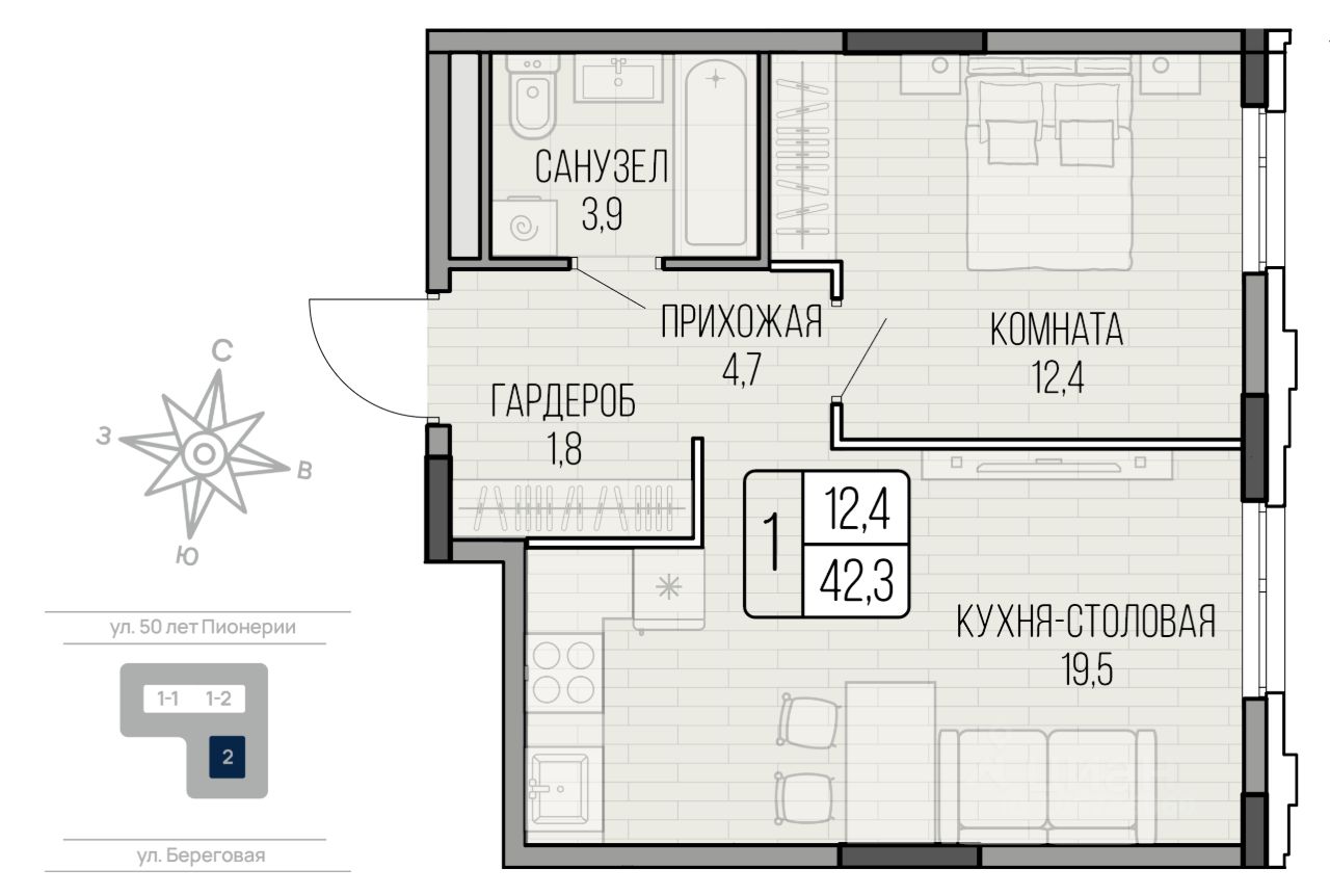 Общая площадь42,3 м2