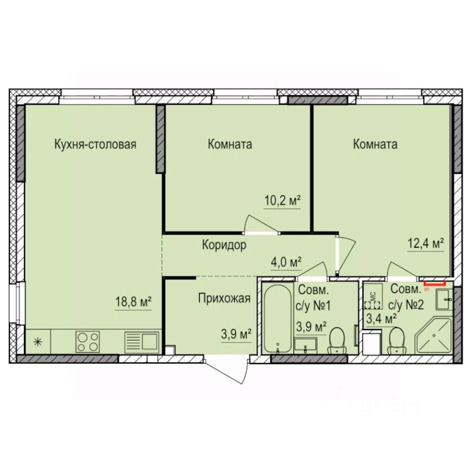 Общая площадь56,6 м2