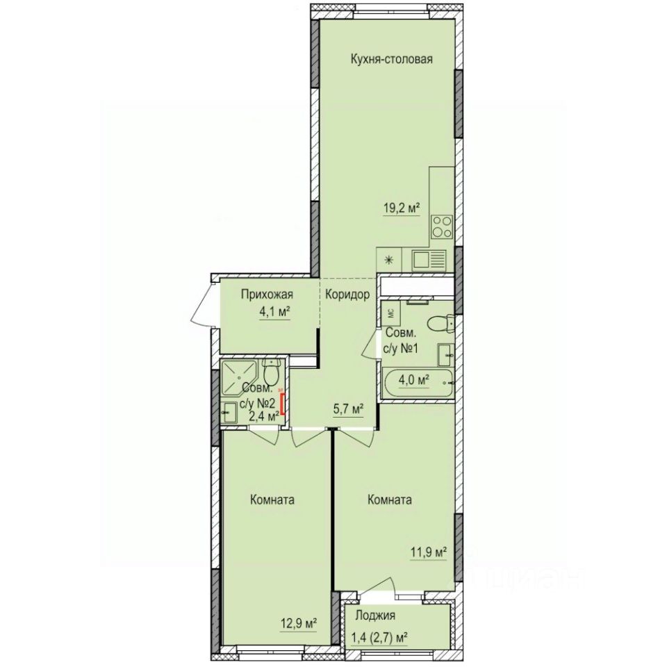 Продаётся 2-комнатная квартира в строящемся доме (Дом 7), срок сдачи: III-кв. 2028, общей площадью 61.6 кв.м., на 12 этаже. Квартира от застройщика КОМОССТРОЙ. Покупка защищена ФЗ 214 с использованием эскроу счетов.