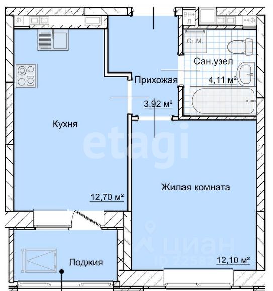 Удобная планировка с кухней 12,7кв.м, большой санузел 4 кв.м, в прихожей место под просторный шкаф-купе, лоджия с возможностью утепления для организации рабочего пространства и отдельно спальная комната 12,1 кв.м.