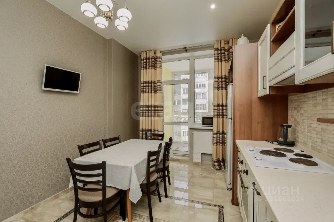 В квартире уже сделан косметический ремонт в классическом стиле. На кухне пол покрыт мрамором, а в санузлах и на кухне установлены тёплые полы. Большая и светлая лоджия застеклена, что позволит вам наслаждаться прекрасным видом и свежим воздухом.