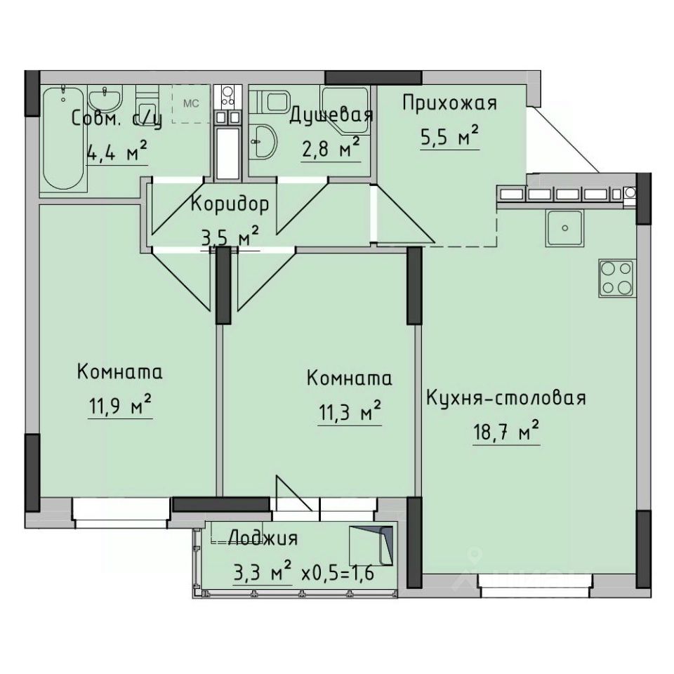 продам 2-к, Холмогорова, 896 693 000 ₽