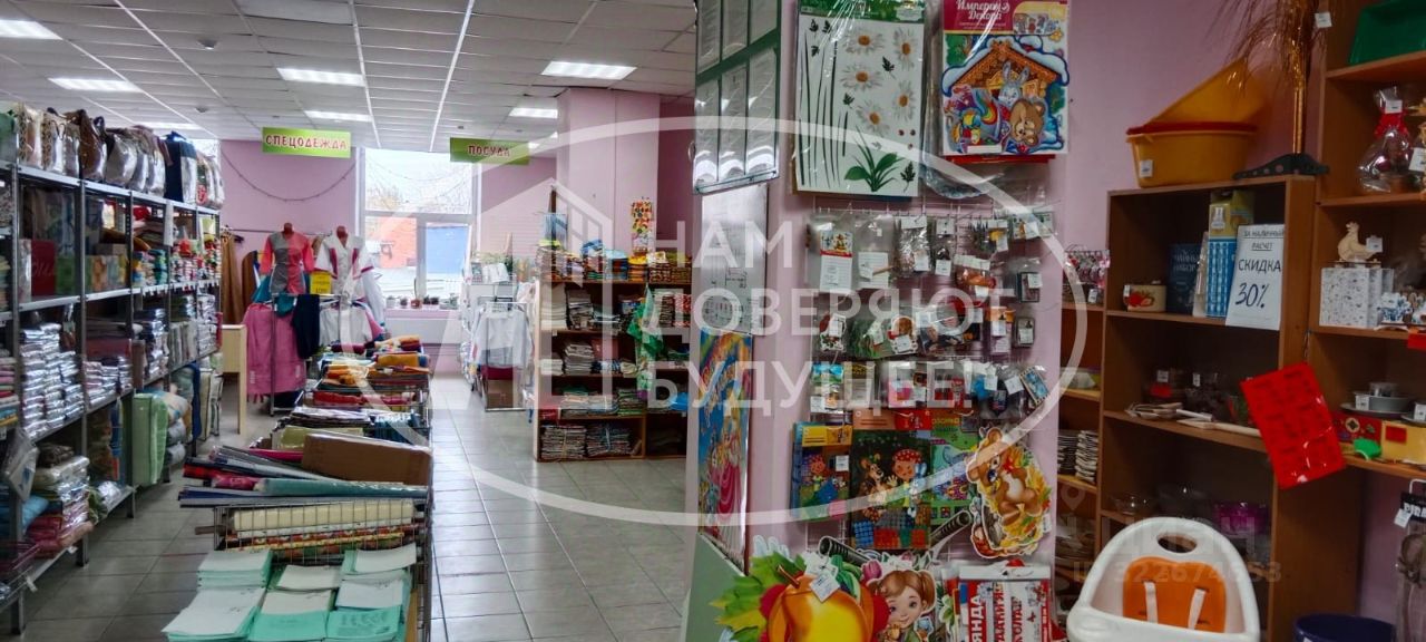 Продается коммерческое помещение, в котором в настоящее время размещен магазин концтоваров, рабочей одежды, текстиля и постельного белья. В коммерческом помещении несколько отдельных помещений: торговый зал, кабинет руководителя, швейная мастерская, кладовые помещения, кухня и санузел.