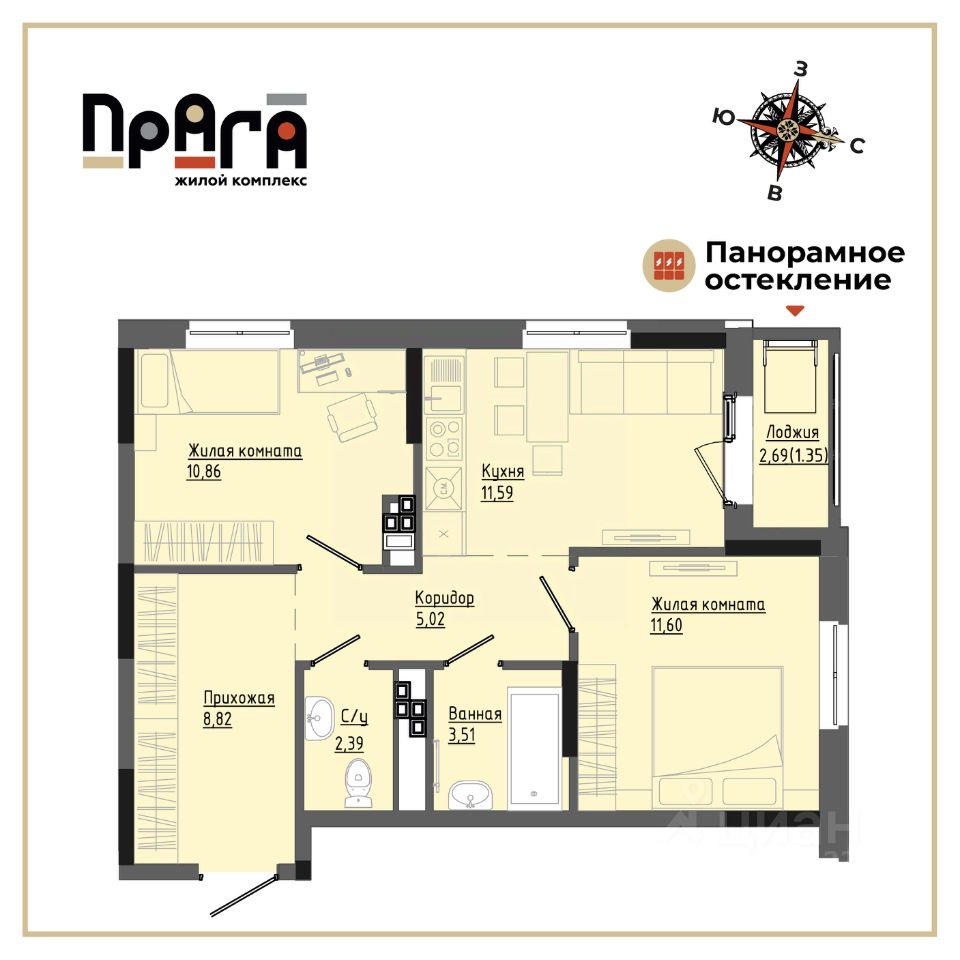 продам 2-к, Комсомольская, 837 063 875 ₽