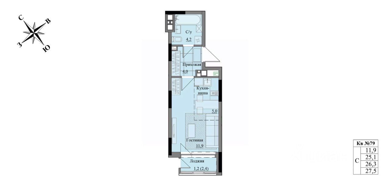 Общая площадь26,3 м2