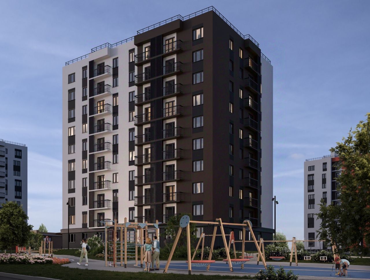 Это огромное пространство - целых 2,37 Га жилой среды, внутри которой мы разрабатываем множество сценариев досуга и отдыха будущих жителей! Пешеходная зона протяженностью свыше 1000 метров! Для создания комфортной атмосферы, вдоль всего пешеходного маршрута мы высаживаем настоящие сады с молодыми деревьями, декоративными кустарниками и многолетними цветами.