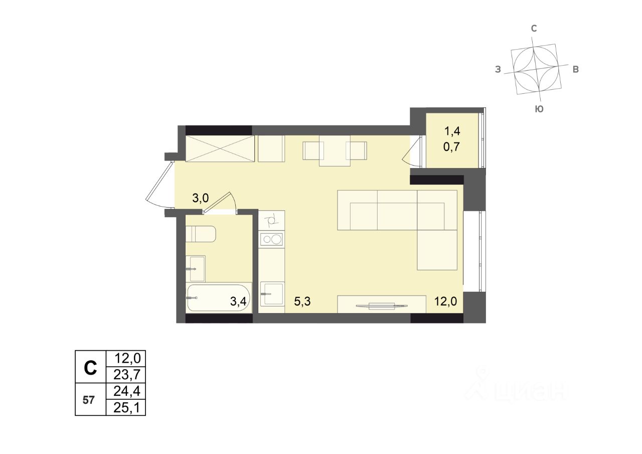 Общая площадь24,4 м2