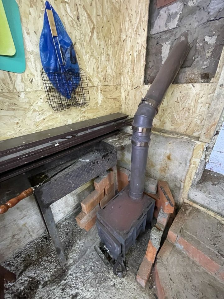 Установлена печка-буржуйка.