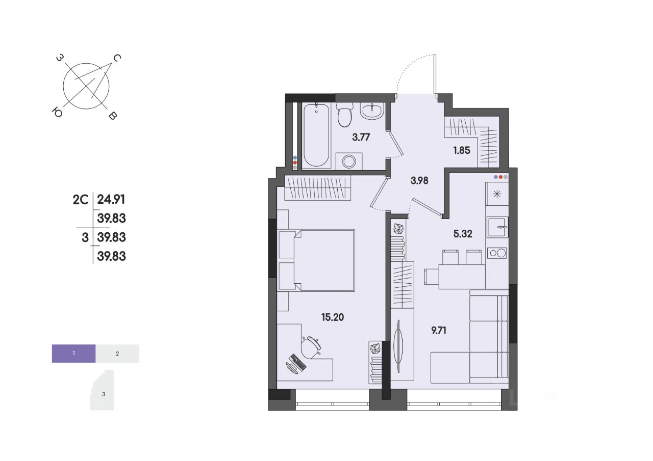 Общая площадь39,83 м2