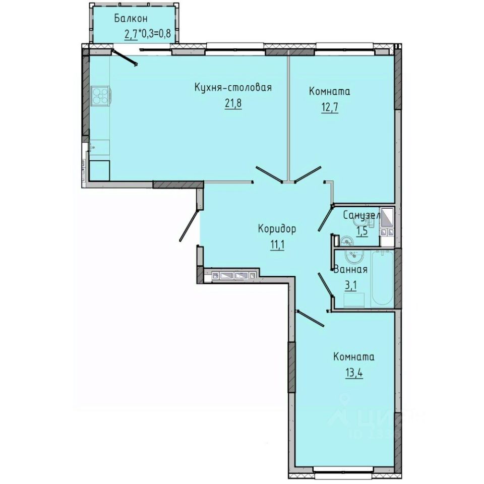 Общая площадь64,08 м2