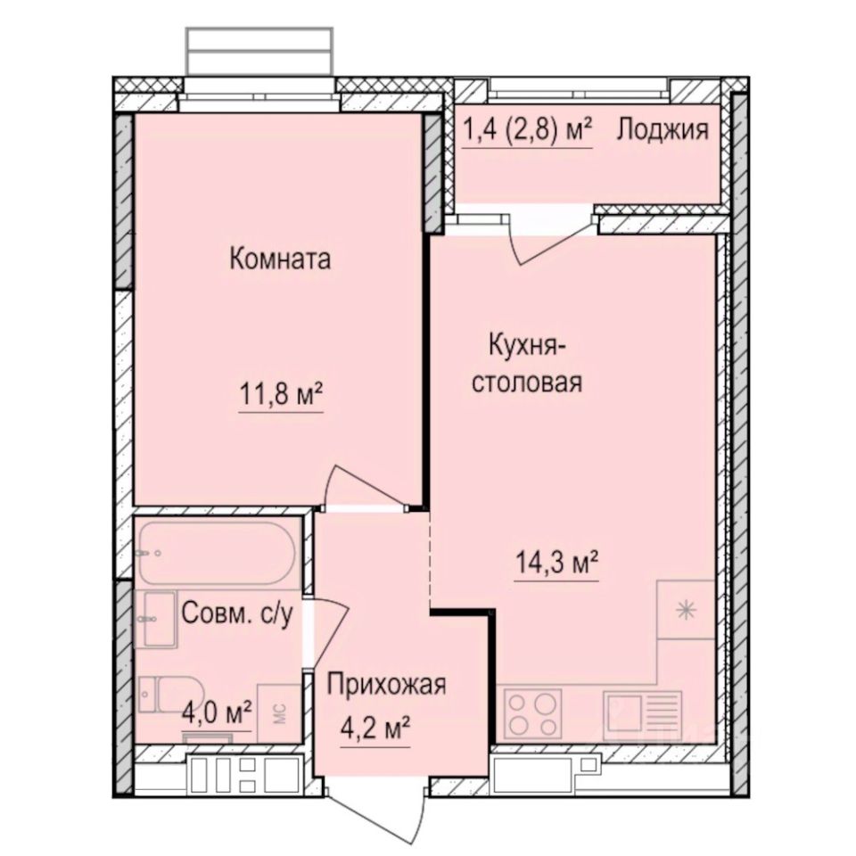 Общая площадь35,7 м2