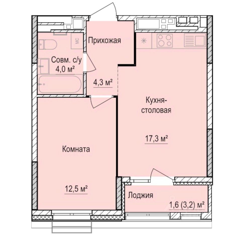 Общая площадь39,7 м2