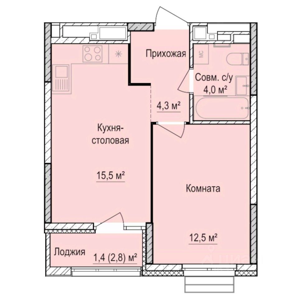 Общая площадь37,7 м2