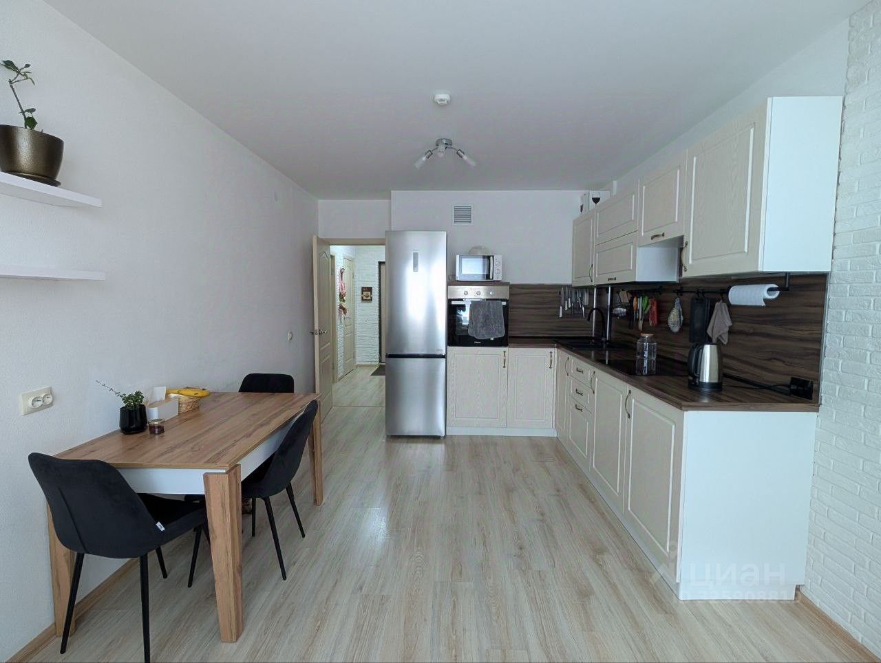 Продаётся уютная квартира 1+ (кухня гостиная) с ремонтом — заезжай и живи. Кухня - 16.8 м2, жилая комната - 16.8 м2, балкон - 3.4 м2, коридор - 4.4 м2, гардеробная/кладовая - 1.7 м2, санузел - 4 м2. В жилой комнате остаётся шкаф-купе и кондиционер. В санузле остаётся подвесной шкаф. В кухне остаётся встроенная техника (духовой шкаф, индукционная плита). Подъезд чистый, у каждого есть пандус, лифты работают стабильно, придомовую территорию убирают круглый год (зимой стабильно чистят территорию от снега), жильцы дома отзывчивы. Мусоропровод на этаже чистый без вредителей. Рядом магазины (магнит, пятерочка, хозяйка, зоозавр, красное и белое, Баско), аптеки (Бережная аптека, планета здоровья, госаптека), пункты выдачи заказов (ozon, Яндекс Маркет, wildberres, авито), школа 74, транспорт.
