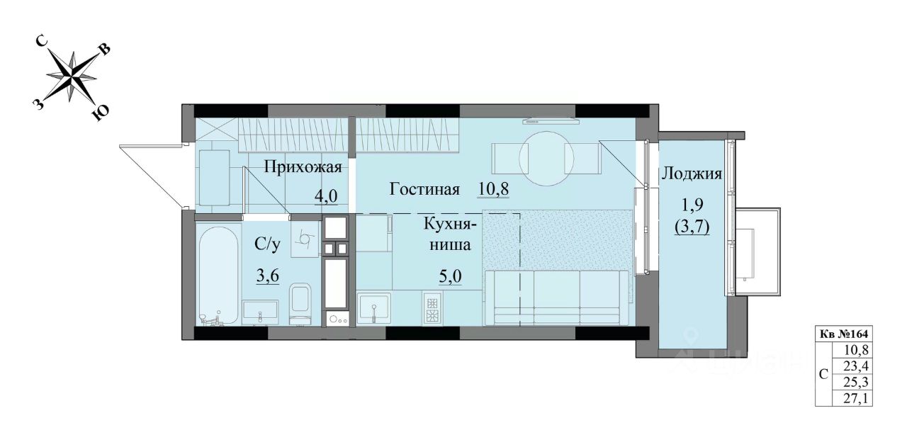 Общая площадь25,3 м2