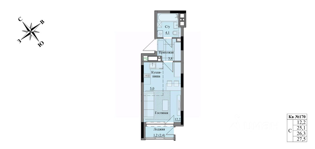 Общая площадь26,3 м2