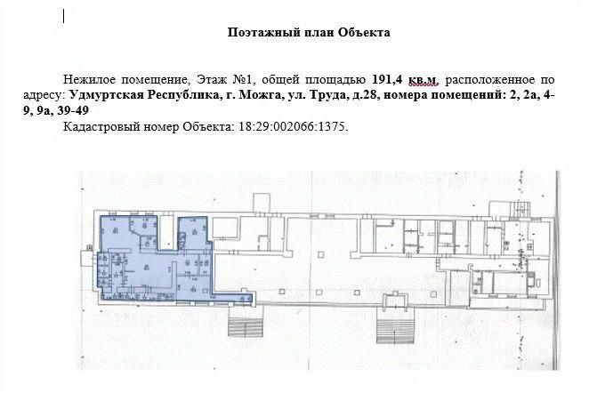 Сбер А предлагает к продаже нежилое помещение площадью 191,4 кв.м, расположенного по адресу: Удмуртская Республика, г. Можга, ул. Труда, д. 28