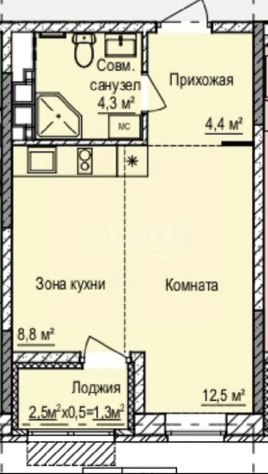 Общая площадь32,5 м2