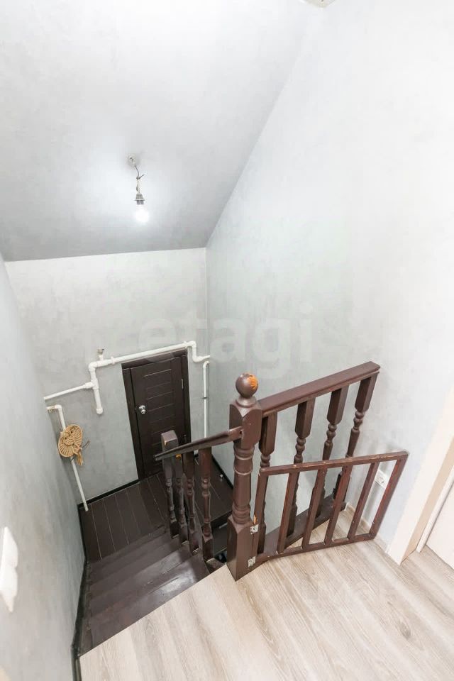 Планировка продумана для комфортного проживания: на первом этаже расположены кухня, гостиная и санузел, на втором — две спальни. Внутренняя отделка выполнена качественно, дом полностью готов к заселению.