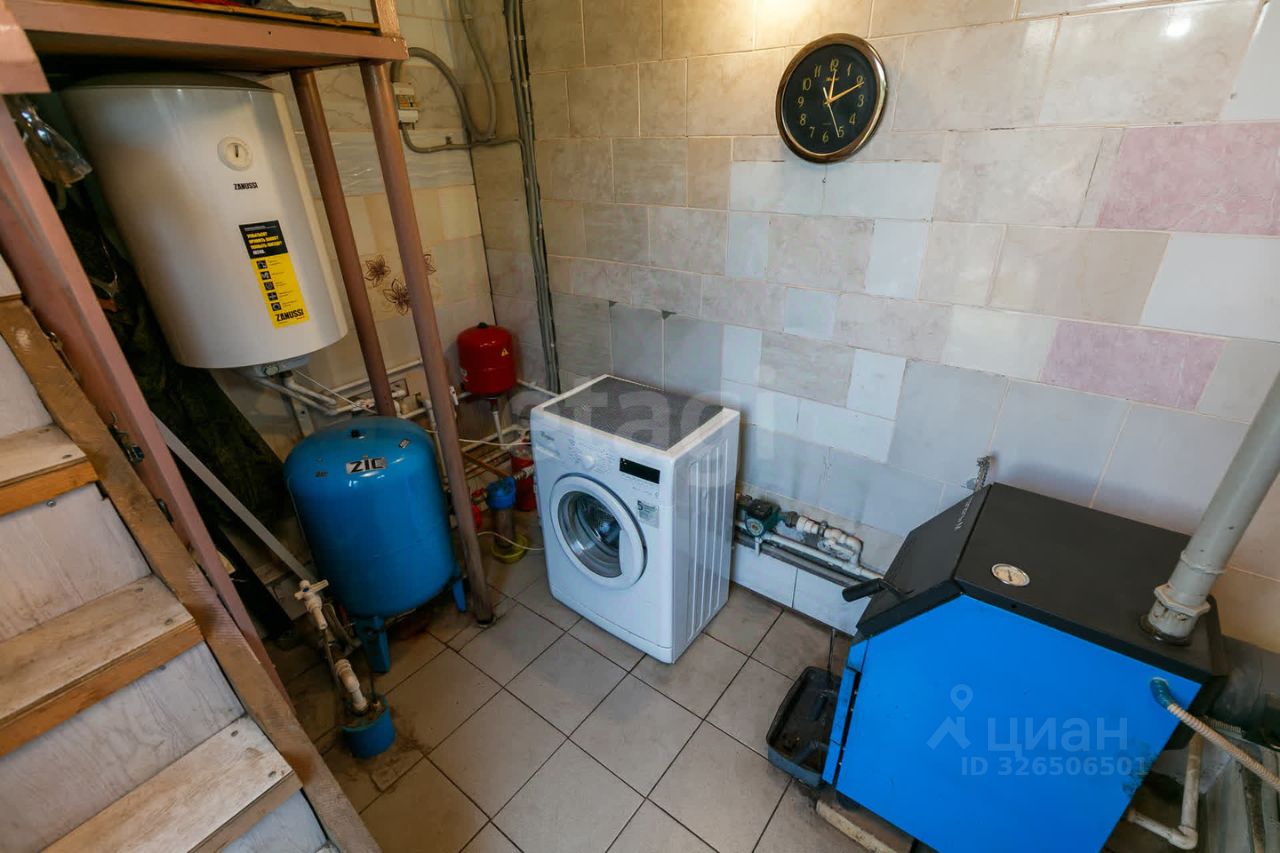 Дом построен по современной технологии с использованием утеплителя из базальтового волокна, обеспечивающего комфортный микроклимат в любое время года. Фундамент на винтовых сваях гарантирует устойчивость конструкции. Все коммуникации подключены: электричество, холодное и горячее водоснабжение, канализация через выгребную яму объемом 4,5 м (3 кольца размеры 1,5х1,0 м). Отопление реализовано с помощью универсального твердотопливного котла, работающего на дровах, угле, пеллетах или электричестве.