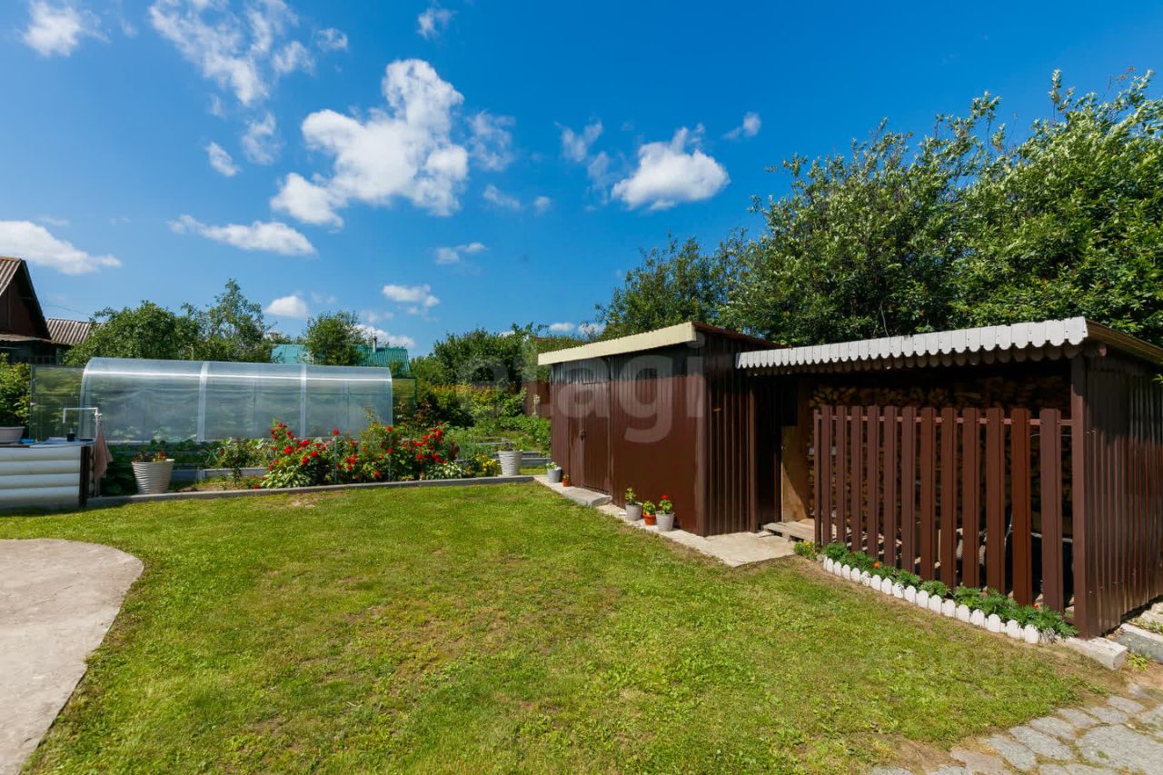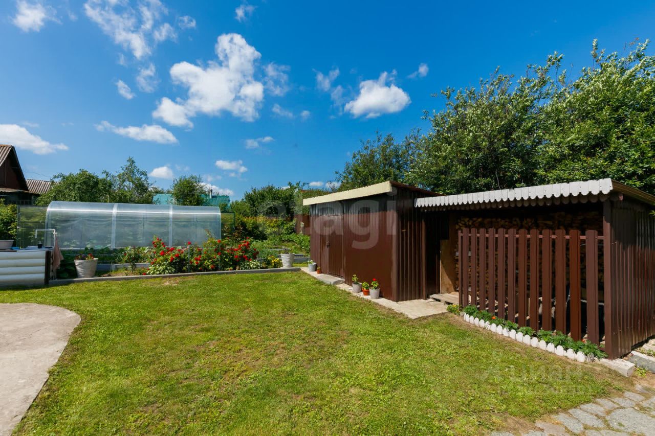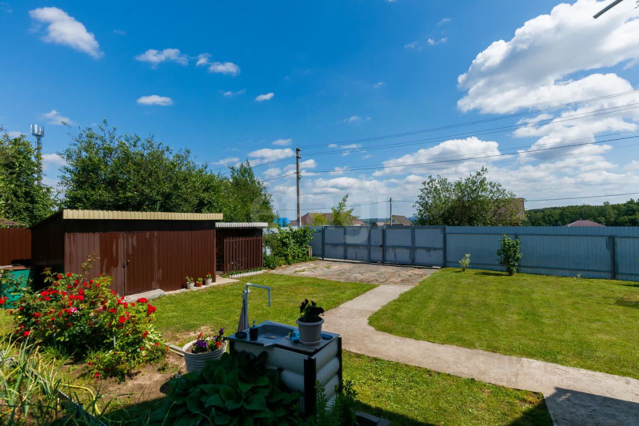 Участок благоустроен: скважина глубиной 67 метров обеспечивает автономное водоснабжение, по периметру установлен забор с двумя распашными воротами. Дополнительные удобства включают теплицу, хозяйственный блок и беседку, что делает территорию функциональной для отдыха или ведения подсобного хозяйства. Есть возможность подключения газа. На участке посажены яблони, вишня, слива, смородина, малина.