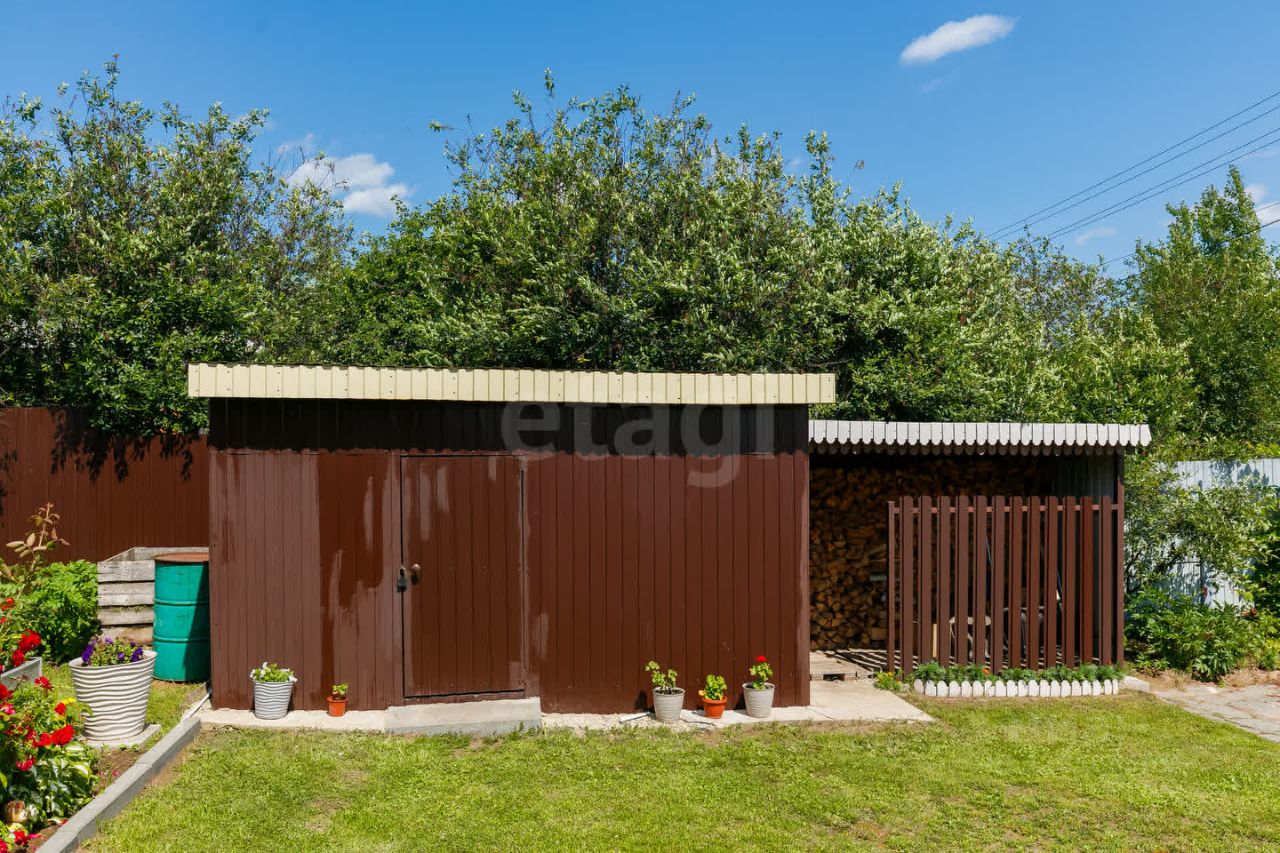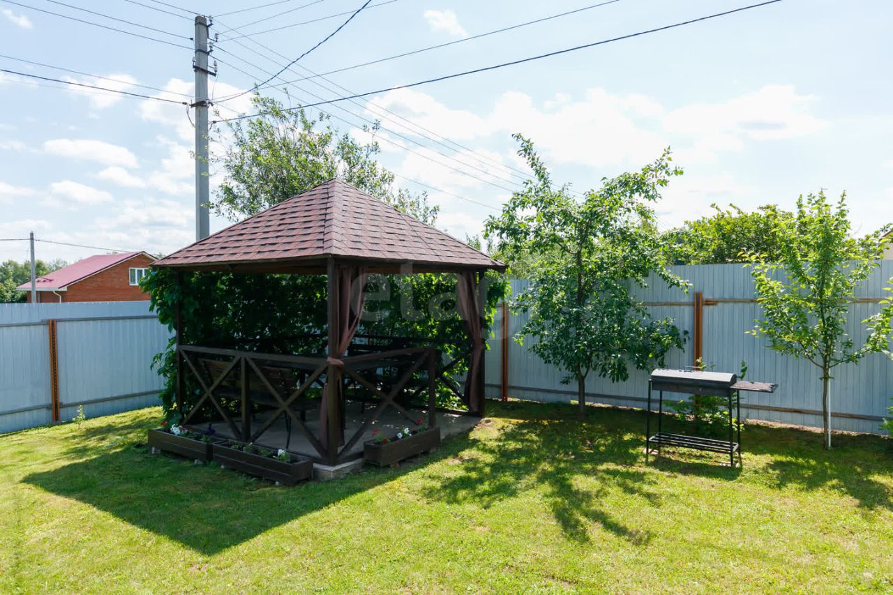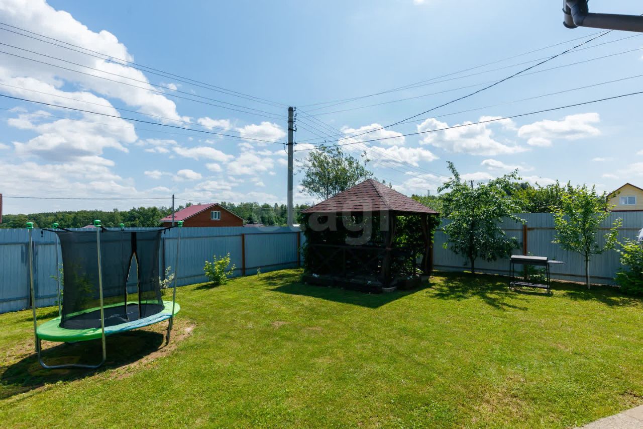 Участок благоустроен: скважина глубиной 67 метров обеспечивает автономное водоснабжение, по периметру установлен забор с двумя распашными воротами. Дополнительные удобства включают теплицу, хозяйственный блок и беседку, что делает территорию функциональной для отдыха или ведения подсобного хозяйства. Есть возможность подключения газа. На участке посажены яблони, вишня, слива, смородина, малина.