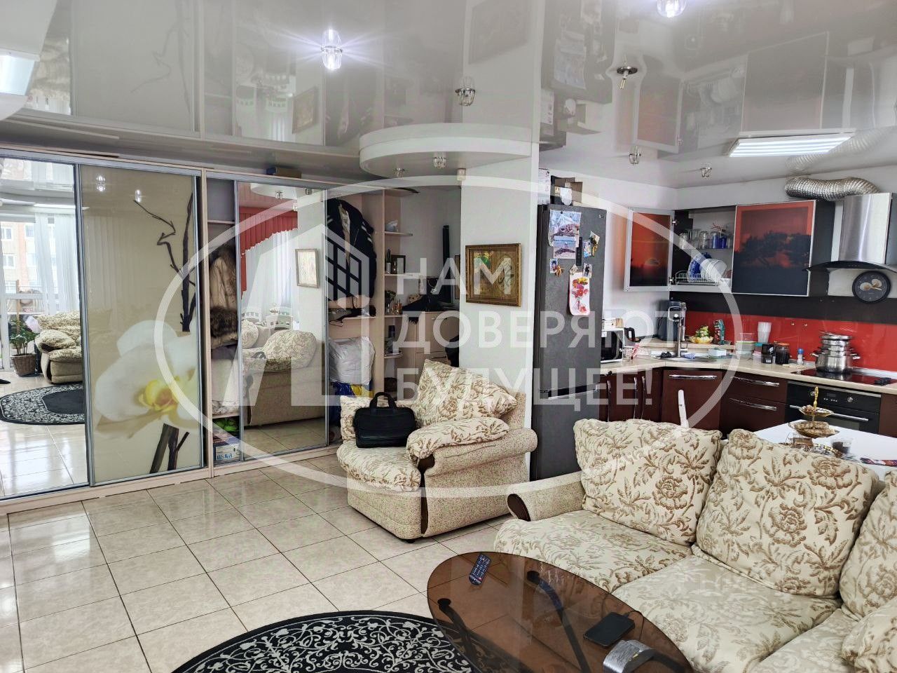 Кухня и гостиная совмещены.