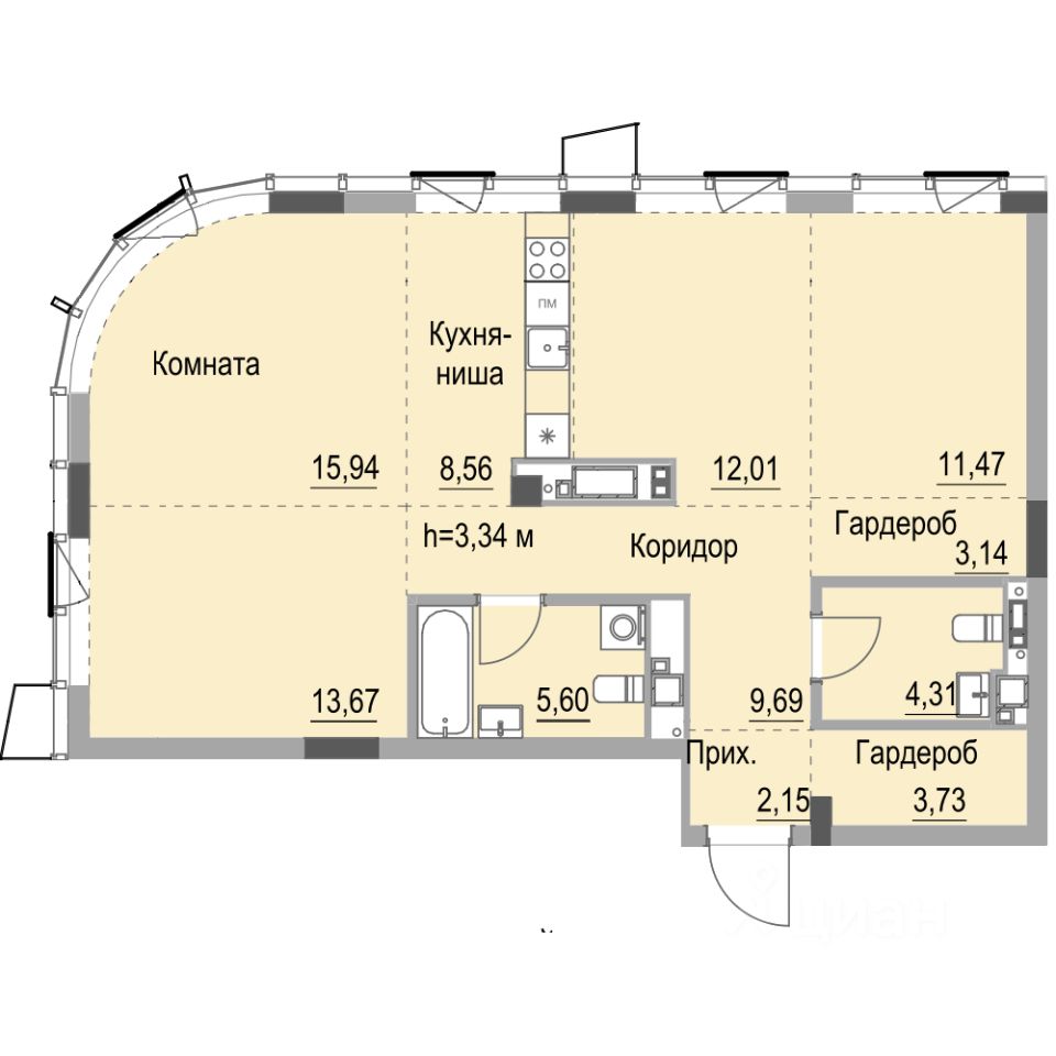 Продаётся студия в строящемся доме (Дом 2), срок сдачи: IV-кв. 2027, общей площадью 93.4 кв.м., на 22 этаже. Объявление от застройщика КОМОССТРОЙ. Покупка защищена ФЗ 214 с использованием эскроу счетов.