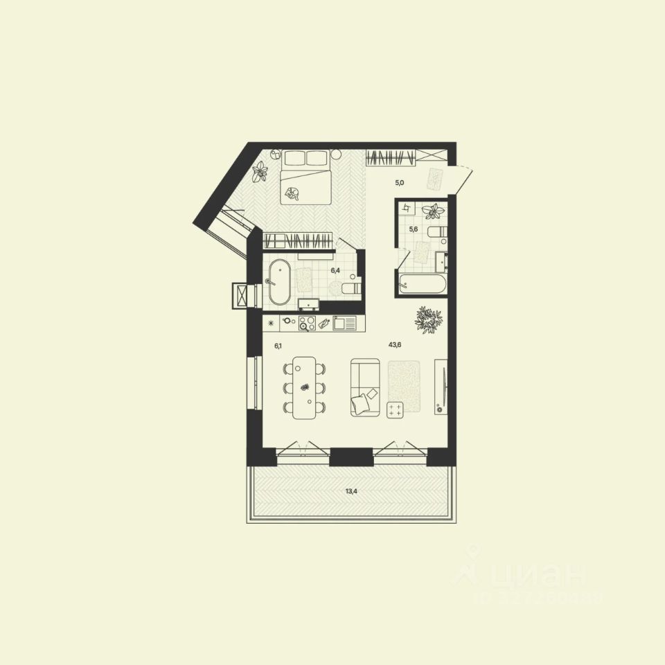 Лот для тех, кто мечтает начинать утро с чашкой кофе на открытом воздухе. Терраса с прямым видом на пруд становится продолжением гостиной, расширяя границы пространства. Внутри - всё, чтобы отдохнуть и восстановиться.