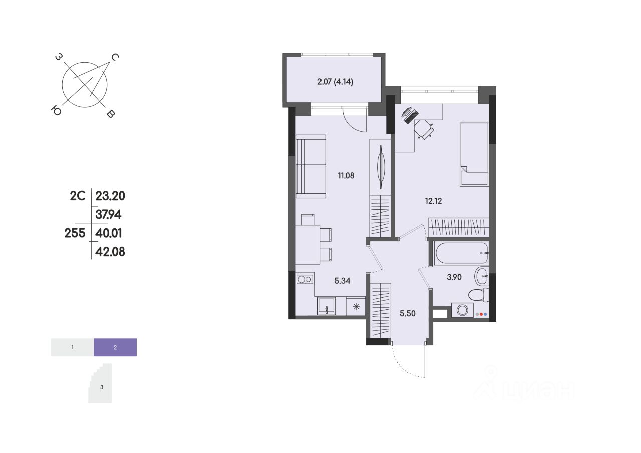 Общая площадь40,01 м2