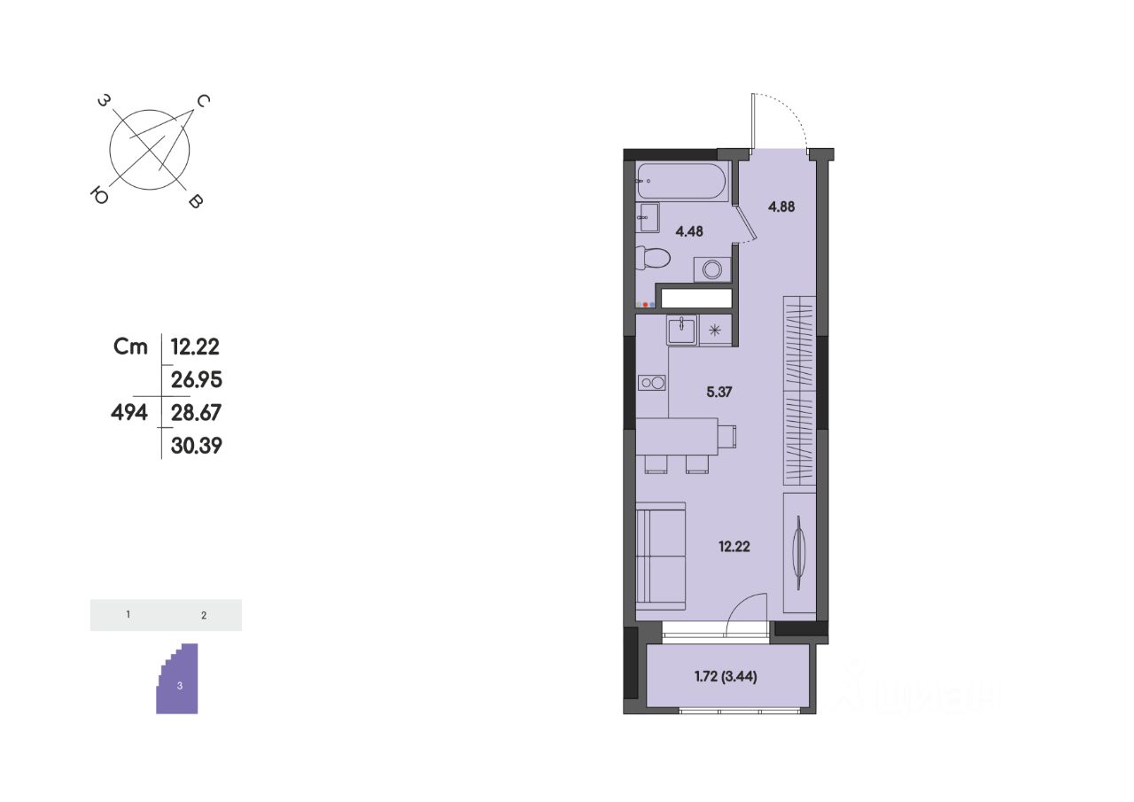 Общая площадь28,67 м2