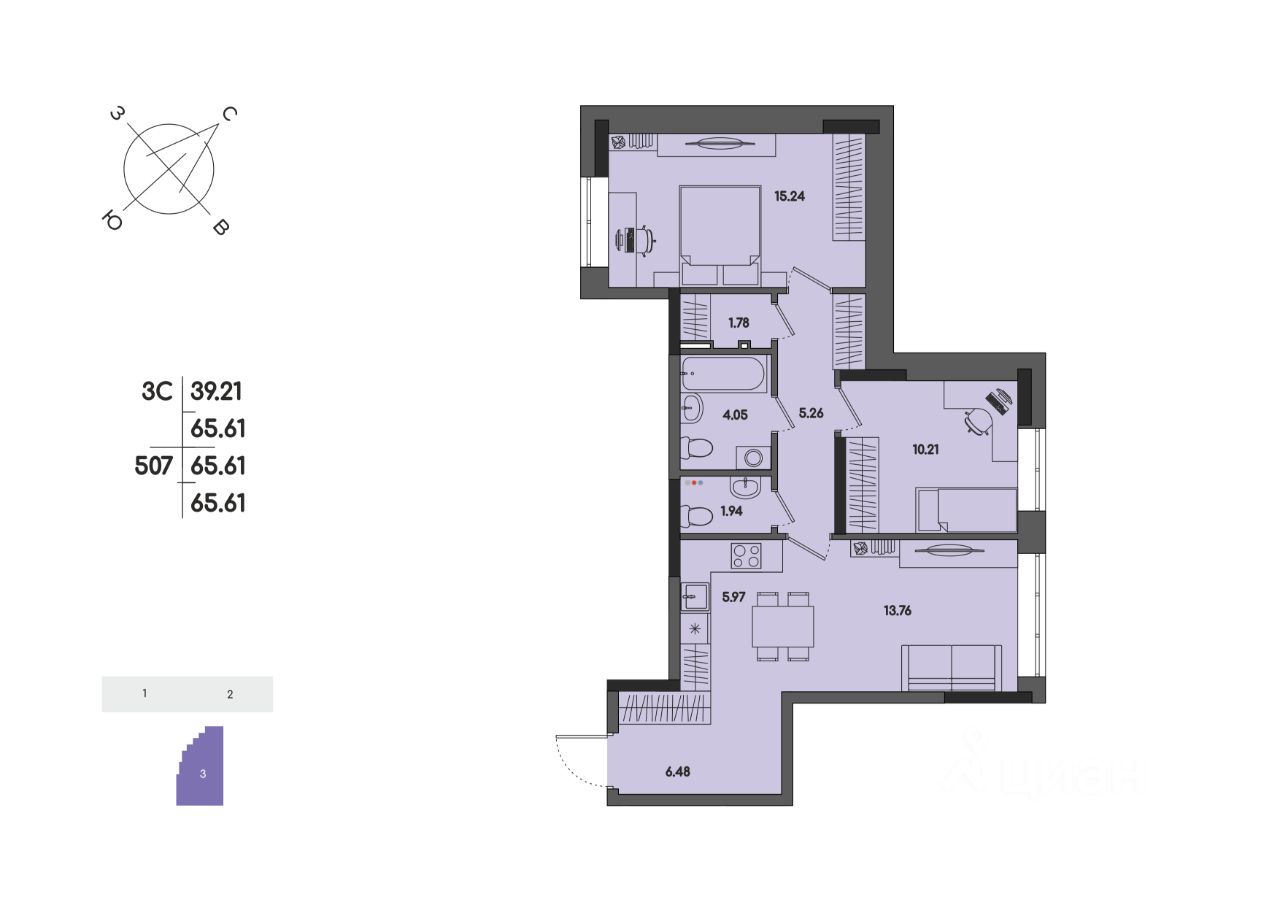 Общая площадь65,61 м2