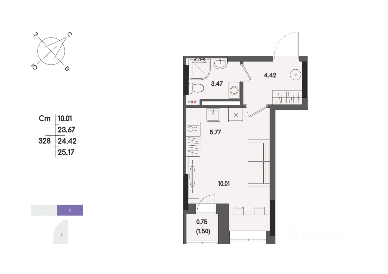 Общая площадь24,42 м2