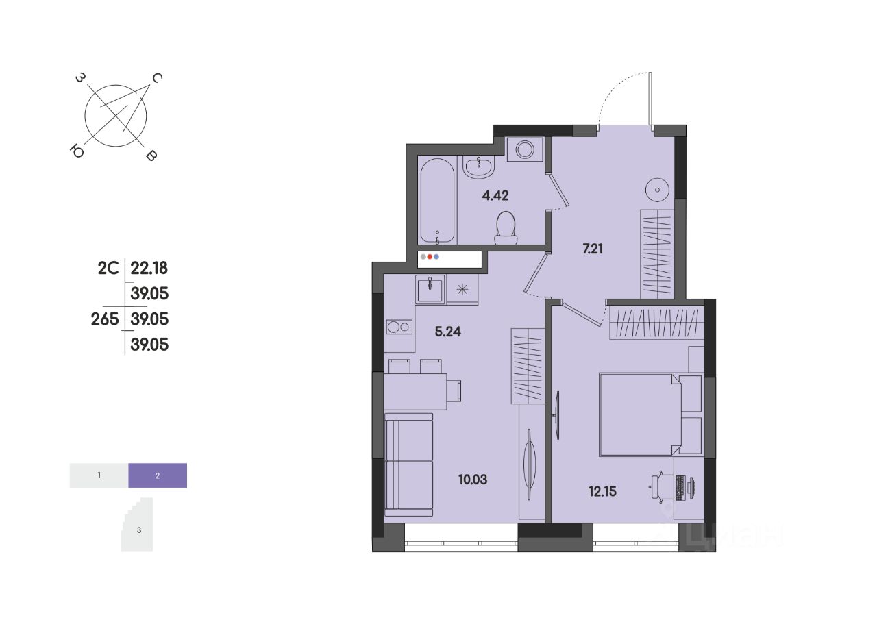 Общая площадь39,05 м2