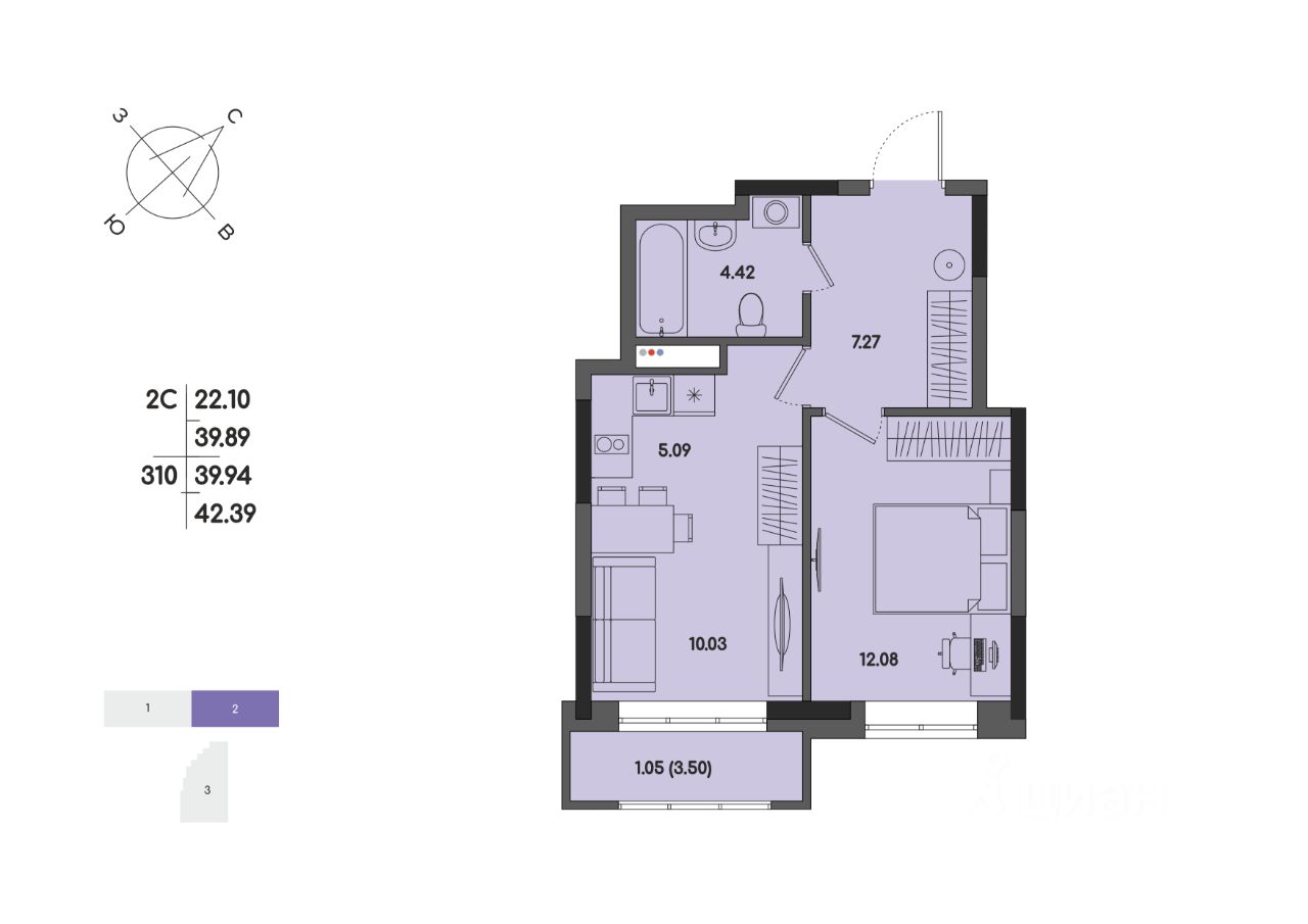 Общая площадь39,94 м2